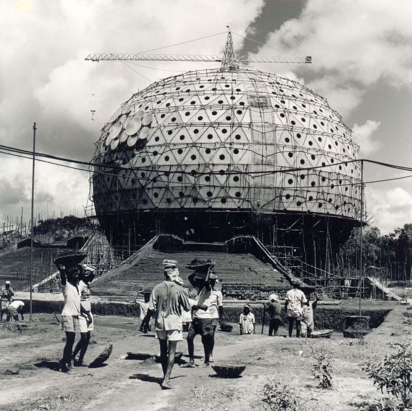 4 Photos of Matrimandir Under Construction